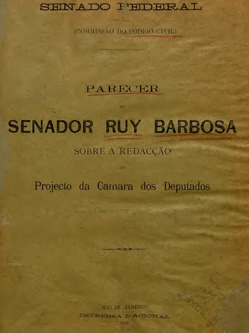 Parecer do Senador Ruy Barbosa sobre a redação do projeto de Código Civil da Câmara dos Deputados de 1902